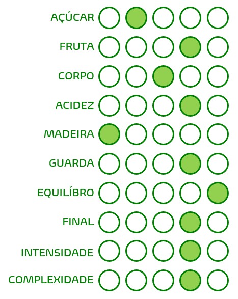 sobressaem notas vivas e frescas. Paladar fresco macio e de acidez equilibrada