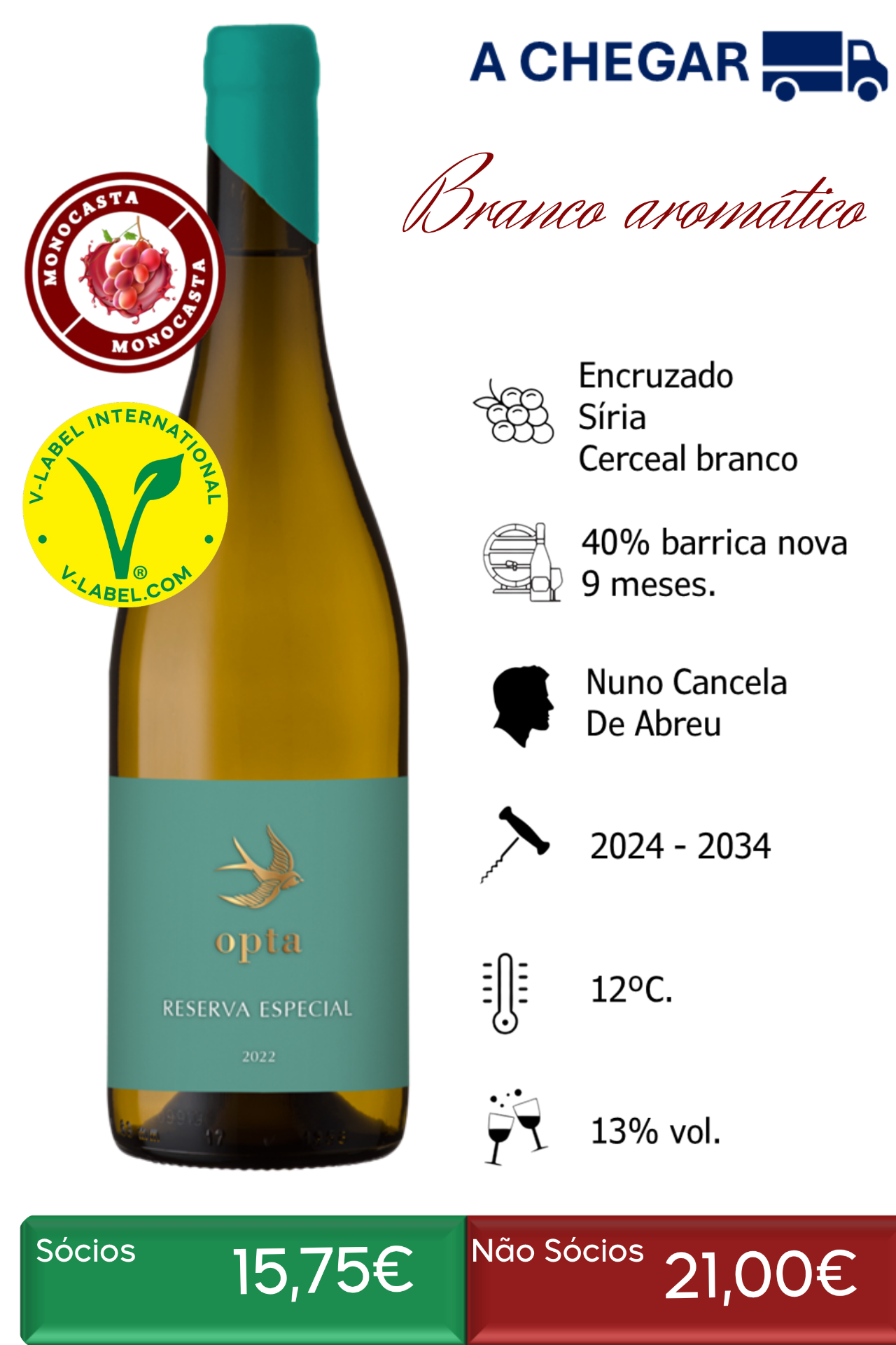 Das castas Encruzado, Síria e Cerceal Branco nasce este Reserva Branco. O vinho fermentado em barrica, fica em estágio 9 meses com batonage. Aroma intenso a lima, pera e marmelo, revelando complexidade com a madeira bem integrada.