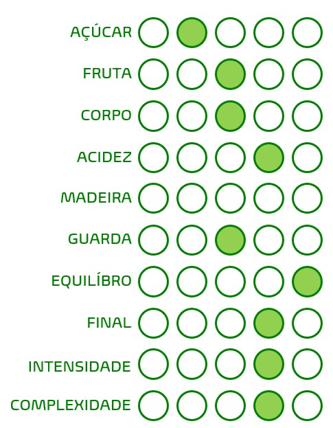 tropicais em destaque, conjugadas com uma excelente acidez. Ligeiras notas de