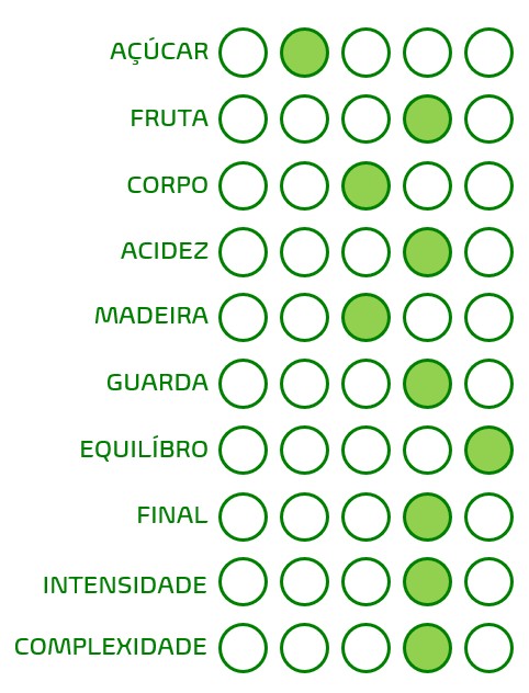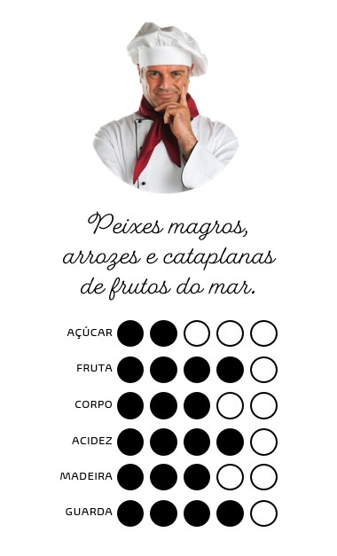 Aroma a fruta tropical: ananás, alperce, pêssego. Notas de frescura: lima e espargo. Na boca, notas ligeiras da madeira onde estagiou, sem sobreposição à fruta primária que transparece.